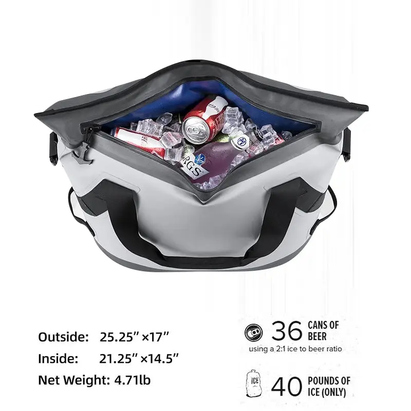 Tá dearadh inslithe trí-ciseal an mhála fuaraithe inslithe seo i ndáiríre mhachnamhach. Tá an ciseal seachtrach déanta as fabraic uiscedhíonach TPU ard-dlúis, a fhéadfaidh teas seachtrach a bhacadh go héifeachtach; Tá an ciseal istigh déanta as ábhar tiubhaithe PEVA de ghrád bia, agus trí theicneolaíocht táthú gan uaim, ní bhaineann sé amach aon sceitheadh ​​i ndáiríre agus tá sé go háirithe caitheamh-resistant. Tá ciseal inslithe cadáis pearl EVA sa lár cosúil le clúdach bia le "blaincéad inslithe teirmeach", a fhéadfaidh an teocht inmheánach a choinneáil leanúnach ar feadh 36 uair an chloig, ag cinntiú go bhfuil na comhábhair úr i gcónaí.